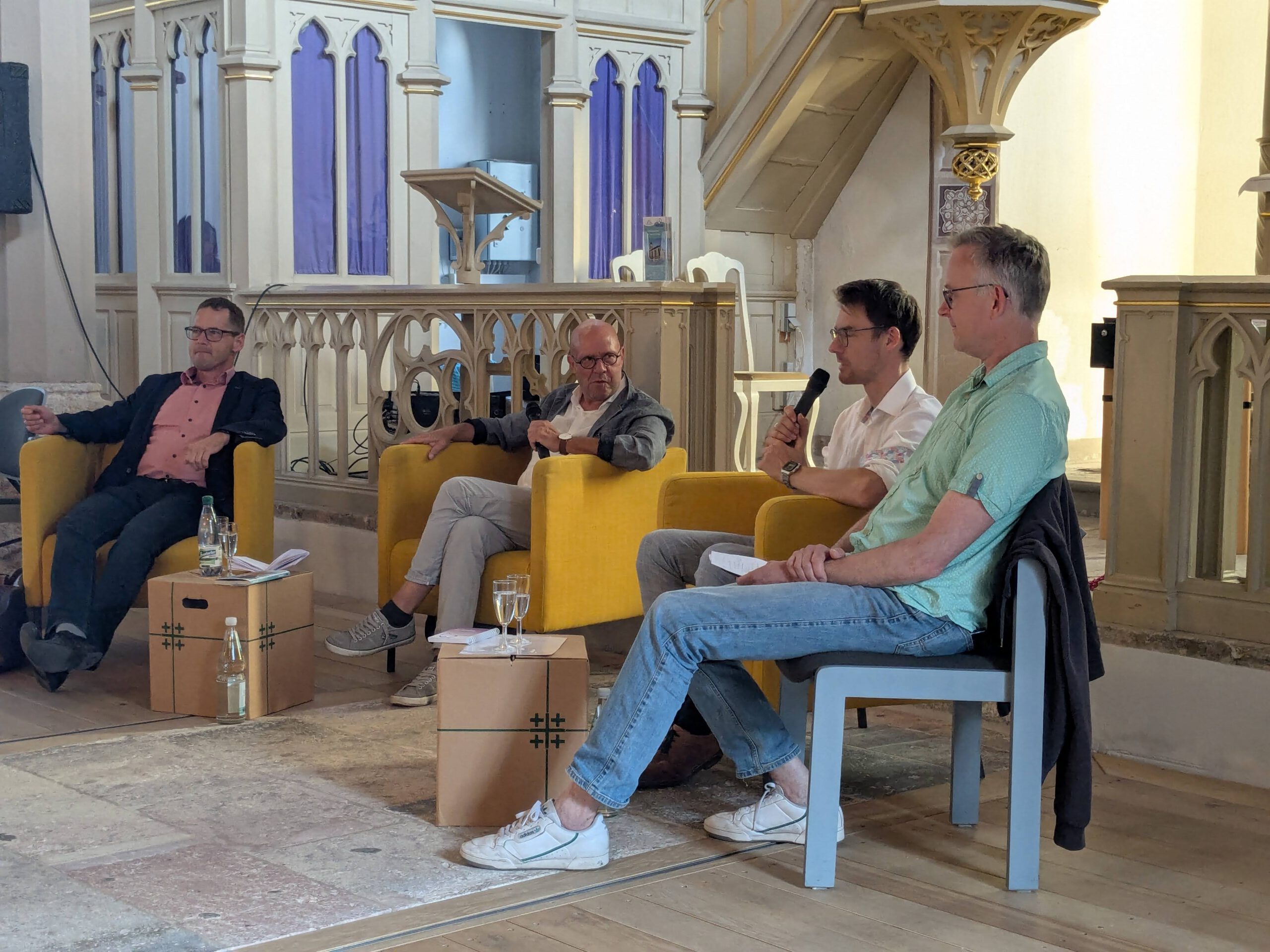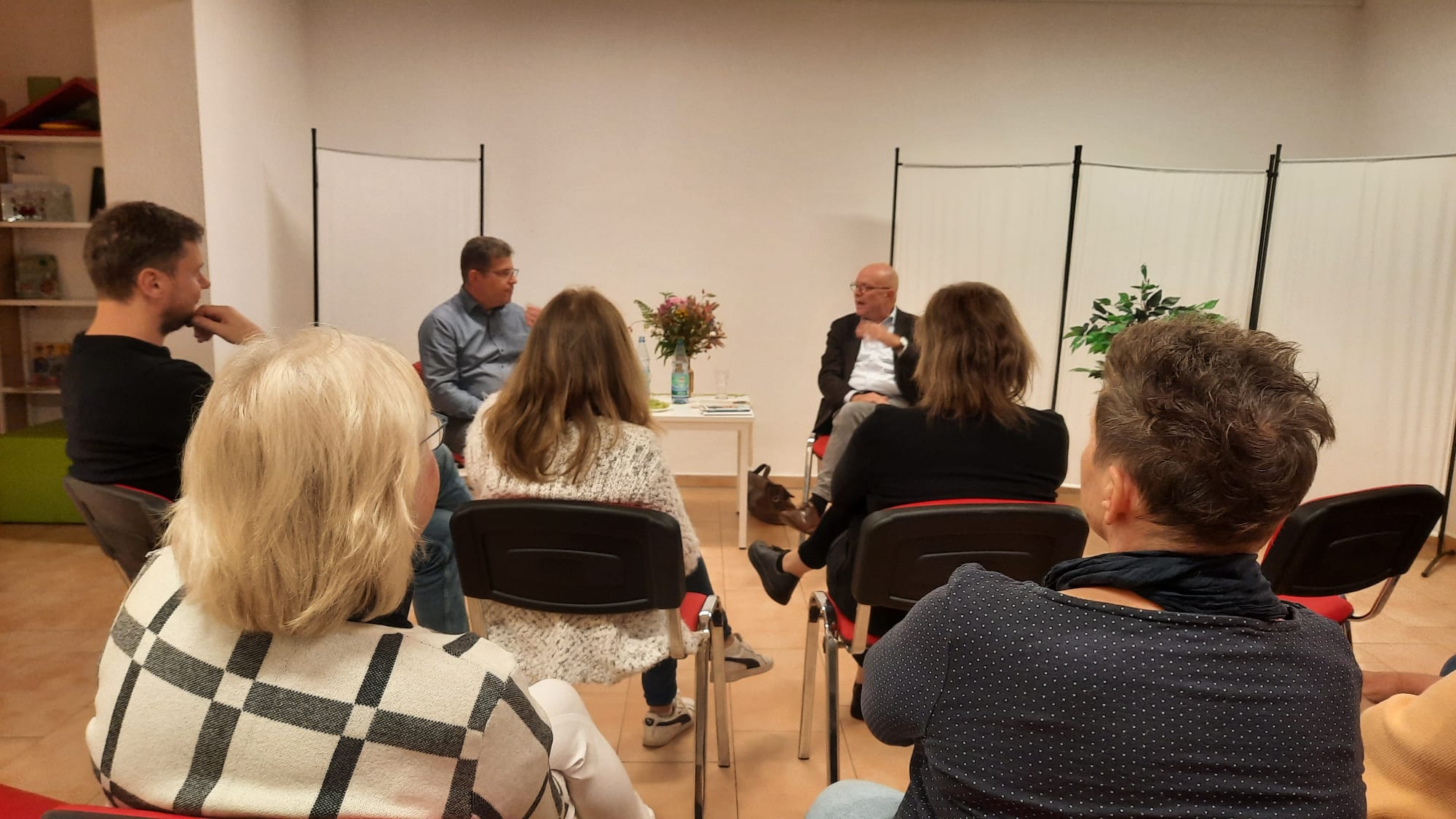 Gäste: Alexander Troll, Bürgermeister Lößnitz; Raphael Weiß, Pfarrer der Kirchgemeinde Lößnitz-Affalter; Christoph Schulte, Lößnitz Makers - 05.09.2025: Lugau/Erzgeb. Stadtbibliothek im Kulturzentrum Villa Facius