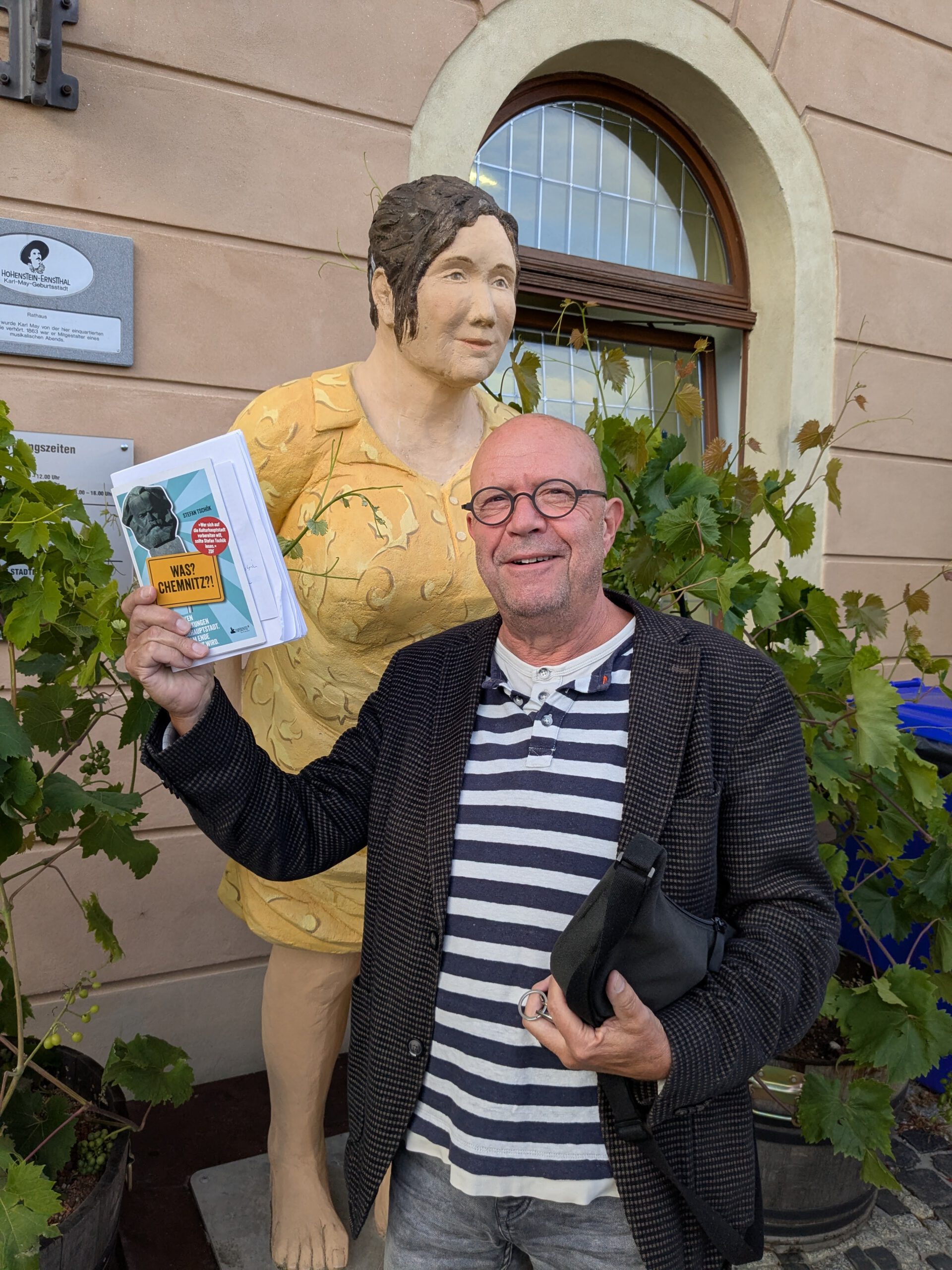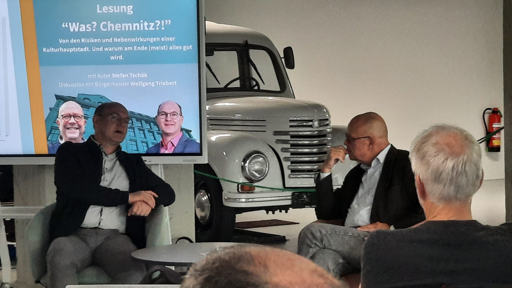 Immer im Gepäck hatte Autor Tschök auf der Lesereise sein Buch „Was? Chemnitz?! – Von den Risiken und Nebenwirkungen einer Kulturhauptstadt. Und warum am Ende (meist) alles gut wird“ (Paperento Verlag). Diese augenzwinkernde „Bedienungsanleitung für die Kulturhauptstadt“ war pünktlich kurz vorm großem Festjahr erschienen. Schon dort standen Fragen wie diese im Mittelpunkt: Was bringt der Titel den Orten der Region überhaupt? Was findet in den Kommunen statt, was nicht? Und was könnte besser laufen?