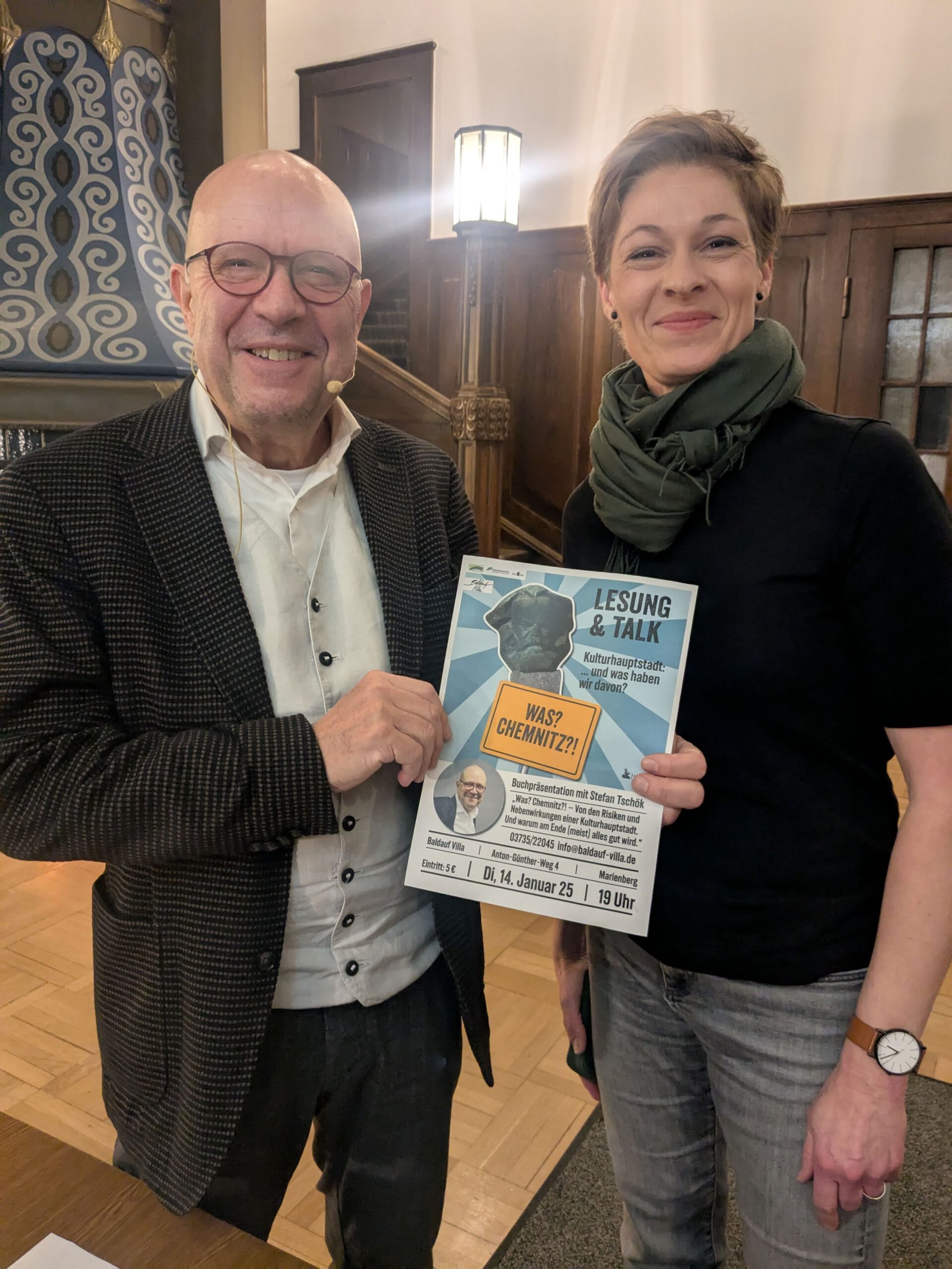 Buchpremiere von „Schöne Grüße aus der Provinz“ mit Autor Stefan Tschök und Verleger Jens Korch: am Donnerstag, 15. Januar 2026, 17 Uhr in der Stadtbibliothek im Chemnitzer TIETZ. Eintritt ist frei. Voranmeldung unter diesem Link.